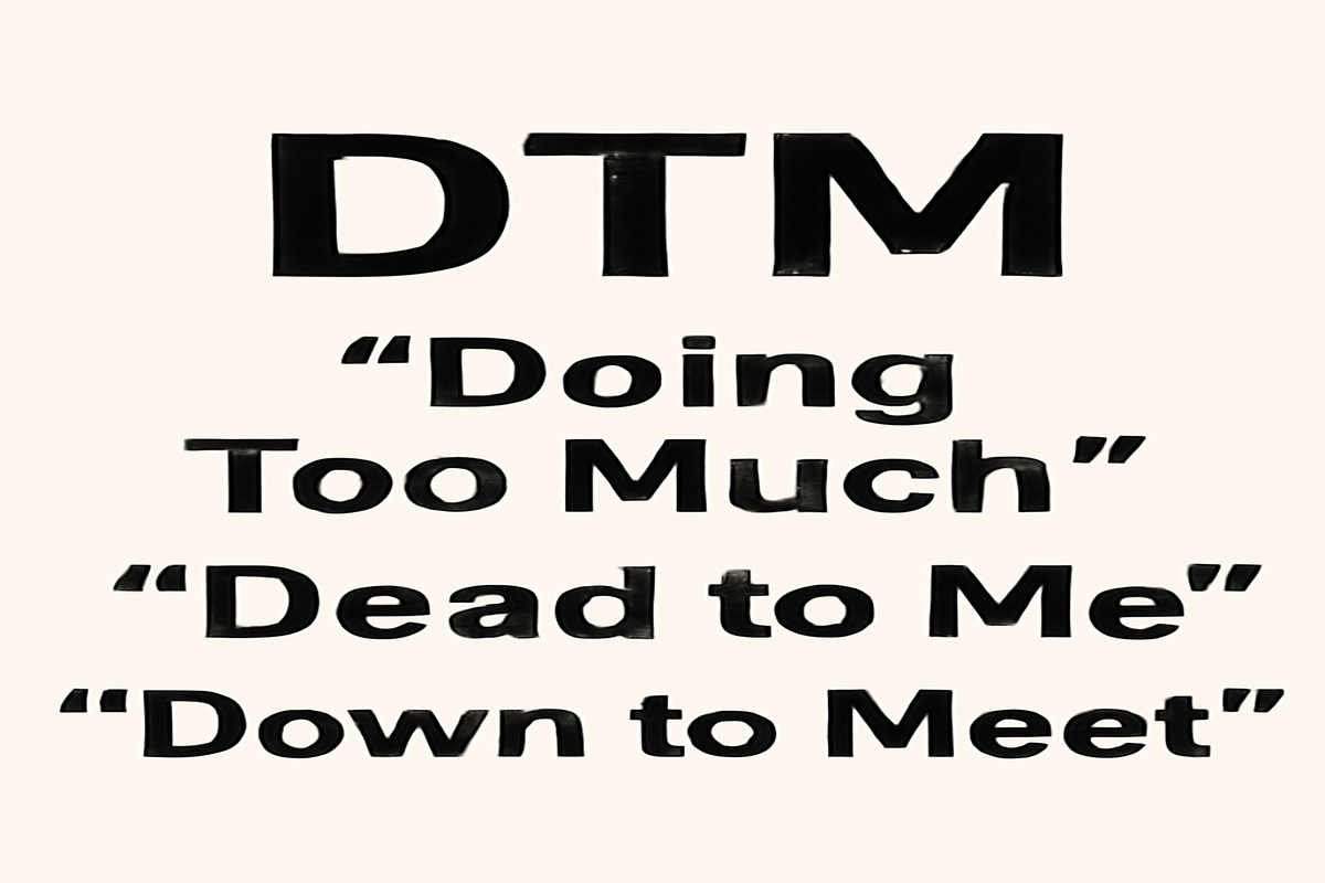 In texting, “DTM TMB” can be interpreted as “Doing Too Much, Thank My Bad.” It’s often used to describe someone who has overstepped a boundary or is being overly dramatic, combined with an apology for the overreaction. It’s a casual, friendly way of saying, “I might have overdone it, but I’m sorry.”